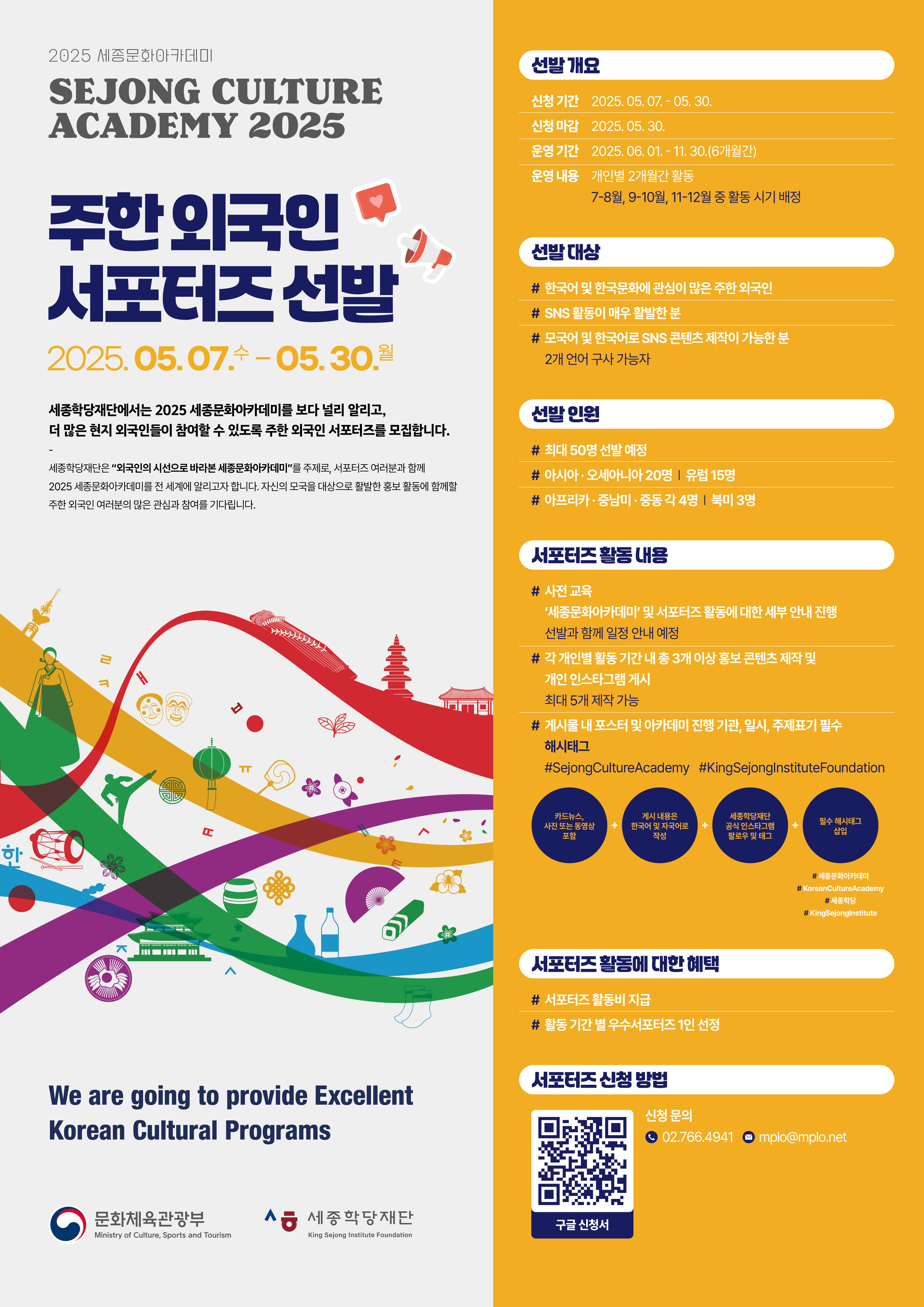 The King Sejong Institute Foundation is recruiting global supporters living in Korea to promote the 'Sejong Culture Academy 2025’ to the world.