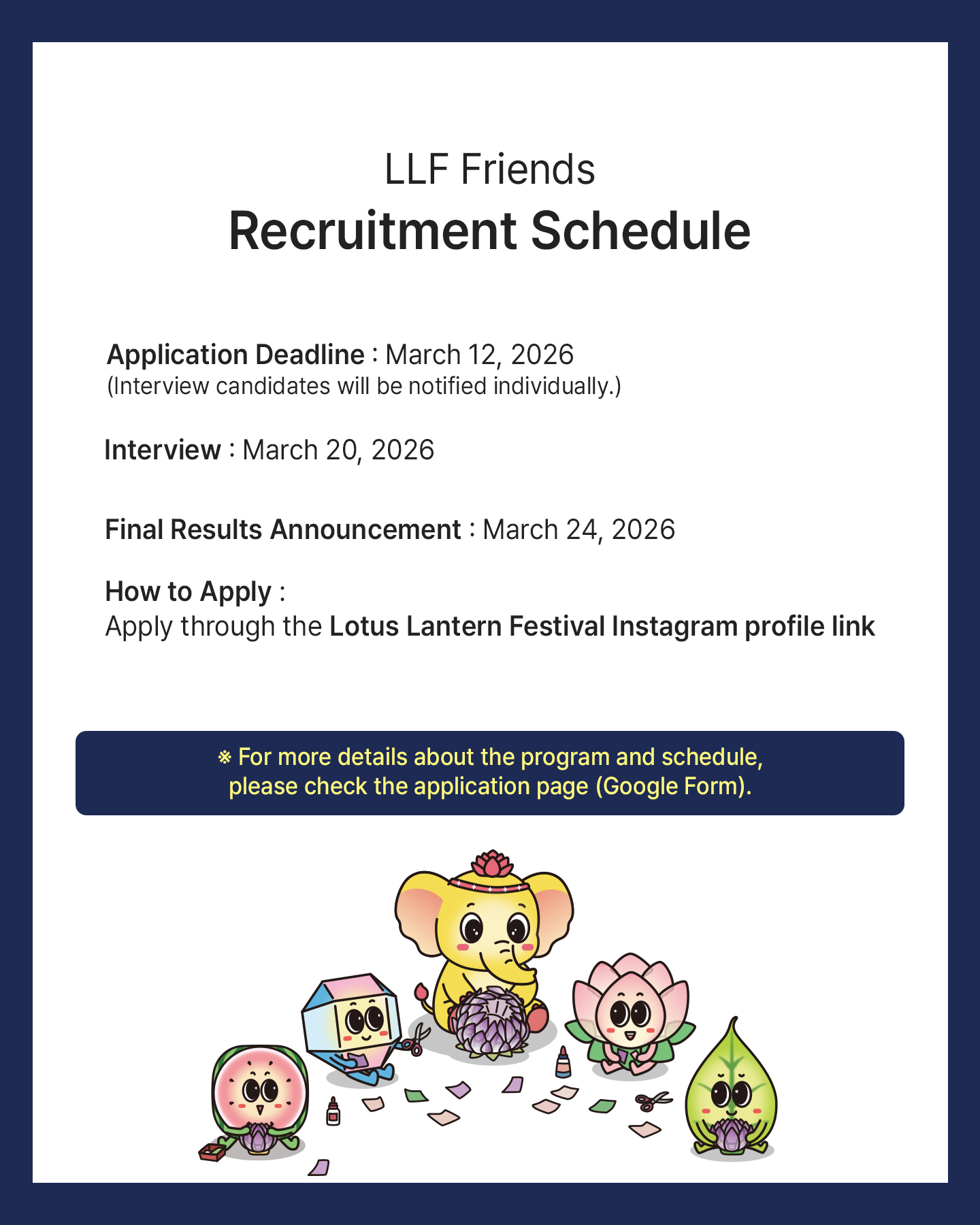 Please complete and submit the application form via the link provided in the Lotus Lantern Festival official Instagram profile (Linktree).